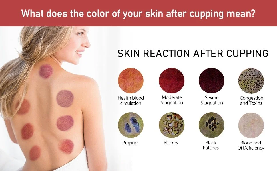 It is important to note that both Cupping and Gua Sha often leave temporary marks on the skin that may resemble bruises but are not painful. In Chinese medicine, we call this effect "sha". These marks, which can range from light red to deep purple, are a normal response and indicate the release of stagnation and toxins from the body.